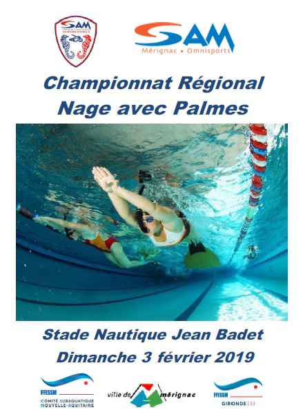 Championnat Régional Nouvelle AquitaineDimanche 03 février 2019 à partir de 14h00 au Stade Nautique Jean Badet de Mérignac 33